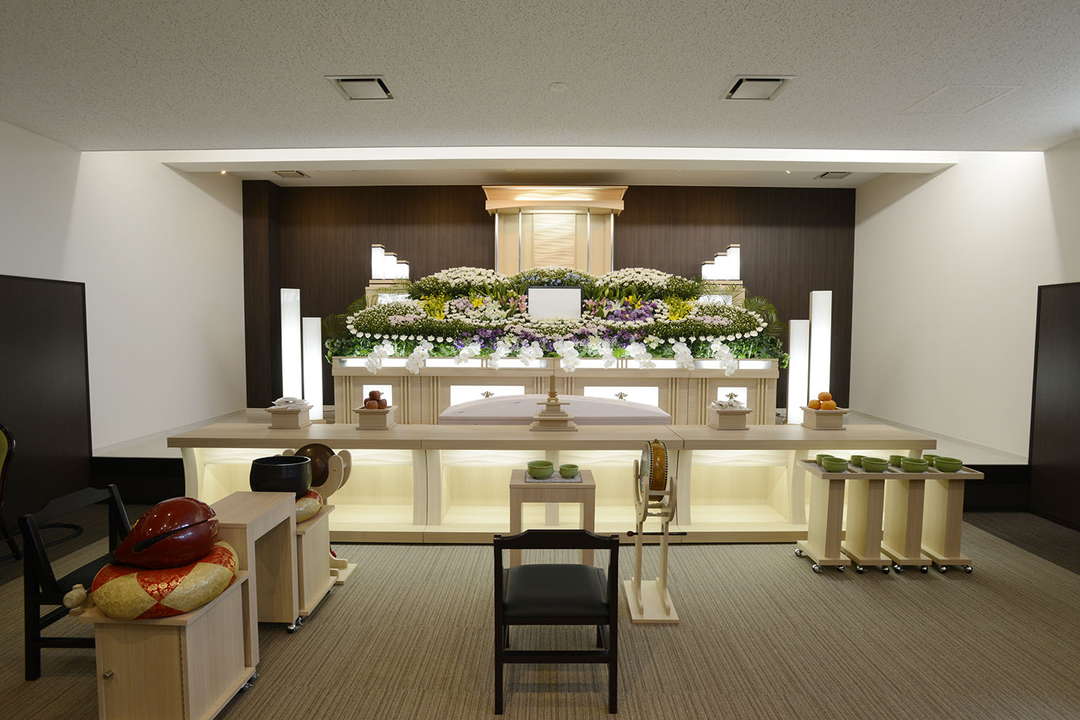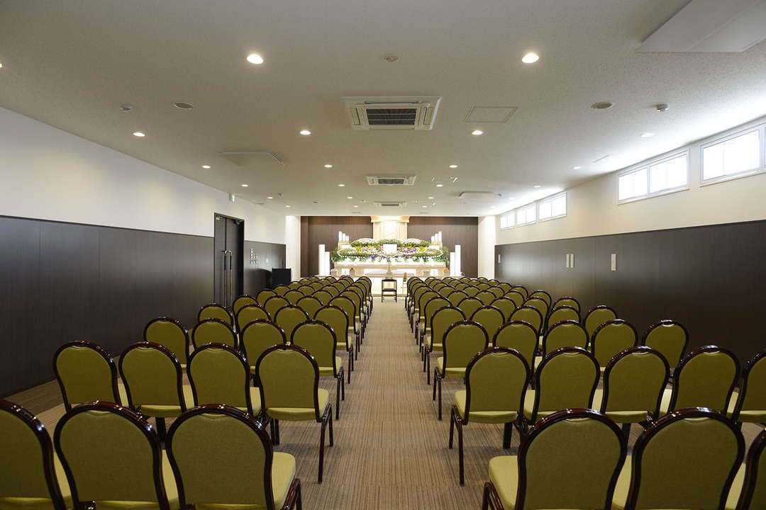 | 設備 | 葬儀式場、エントランス、親族控室、ダイニングルーム、キッチン、テレビ、冷蔵庫、電子レンジ、バスルーム、更衣室、洗面所、導師控室、安置室、冷暖房、給湯室、車椅子、多目的トイレ、アメニティ、駐車場、フリーWi-Fi |